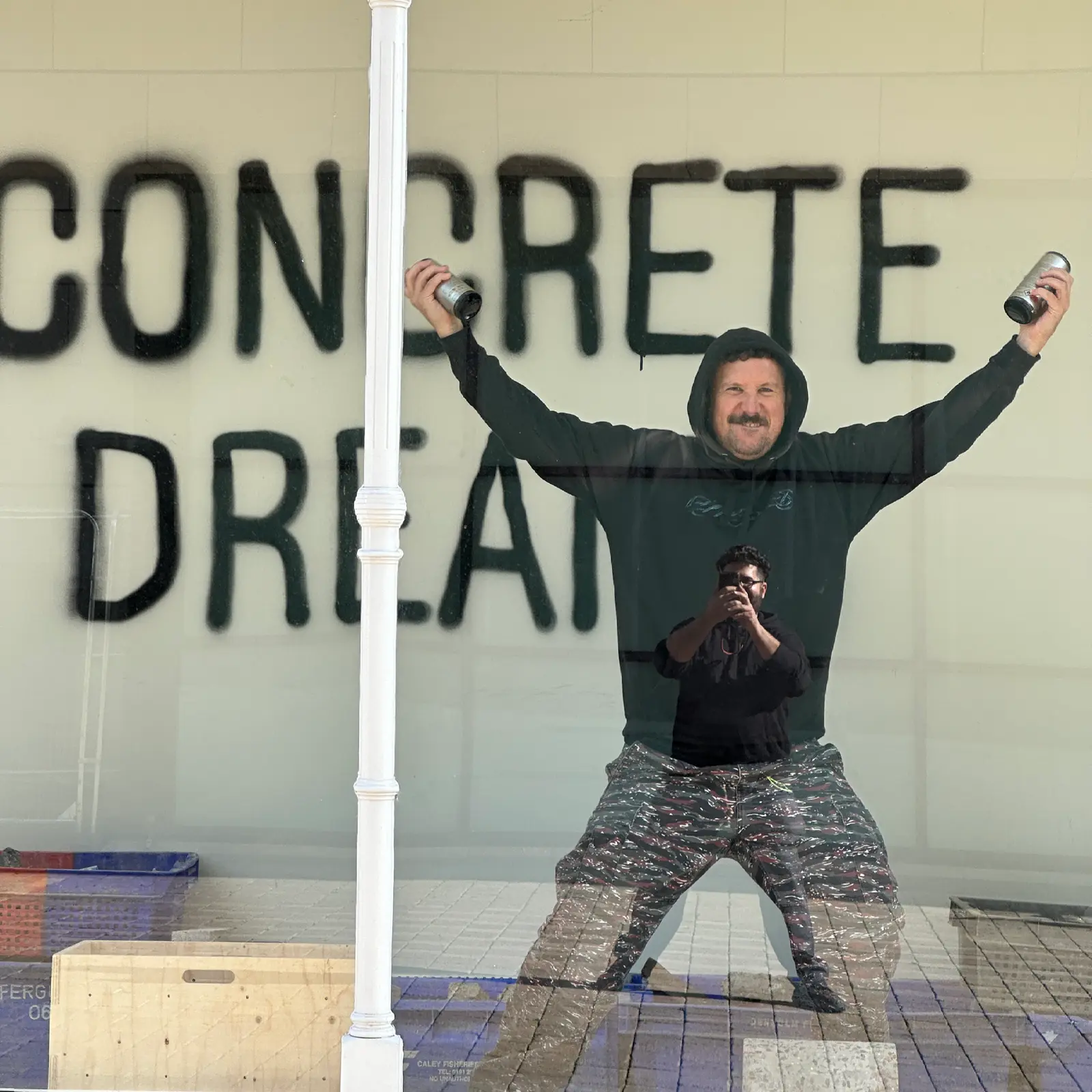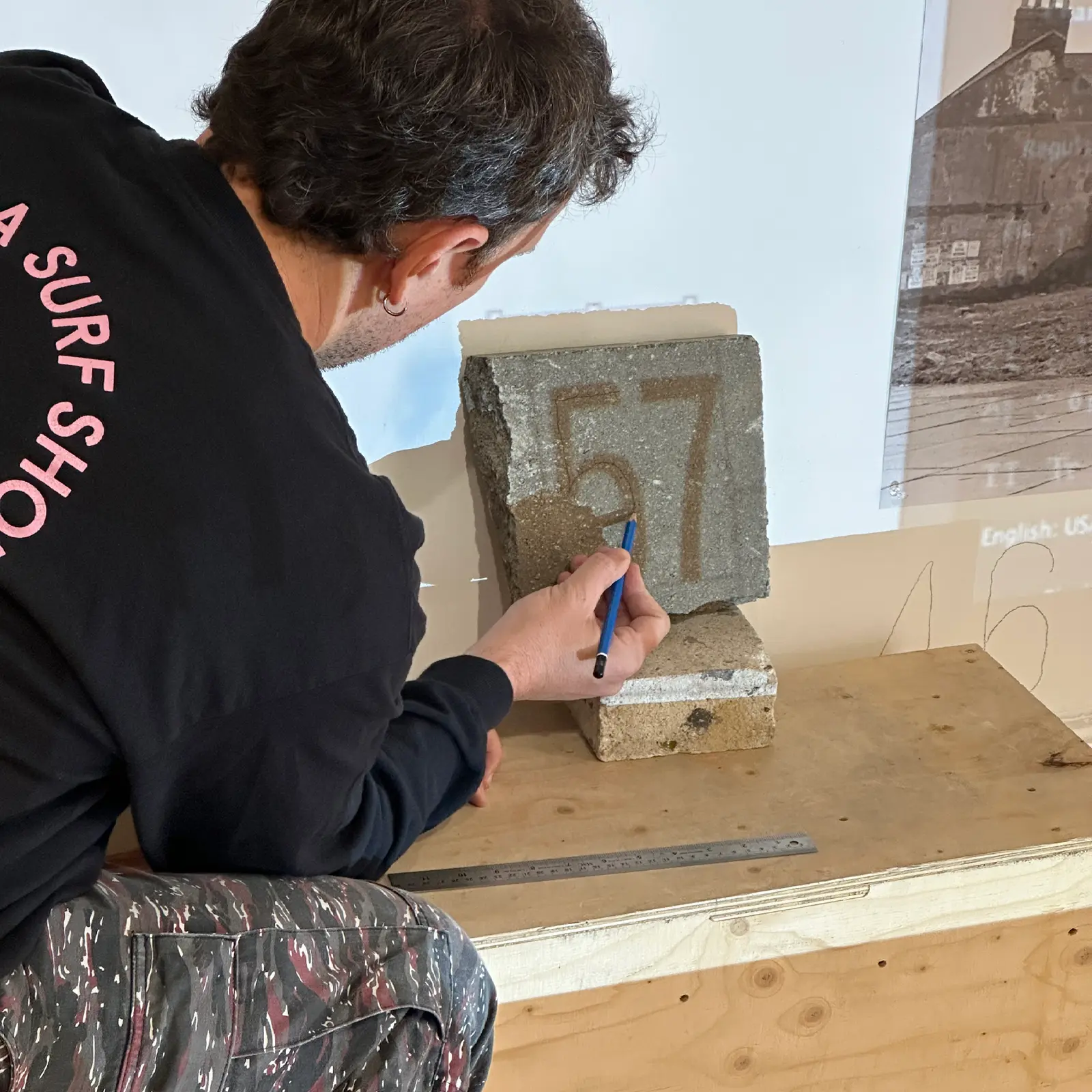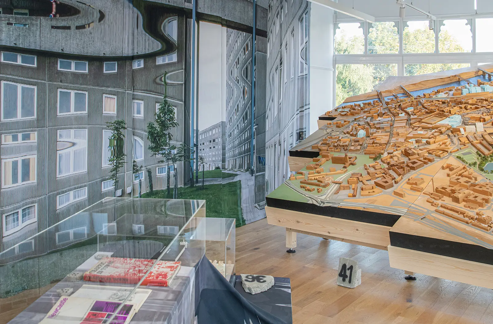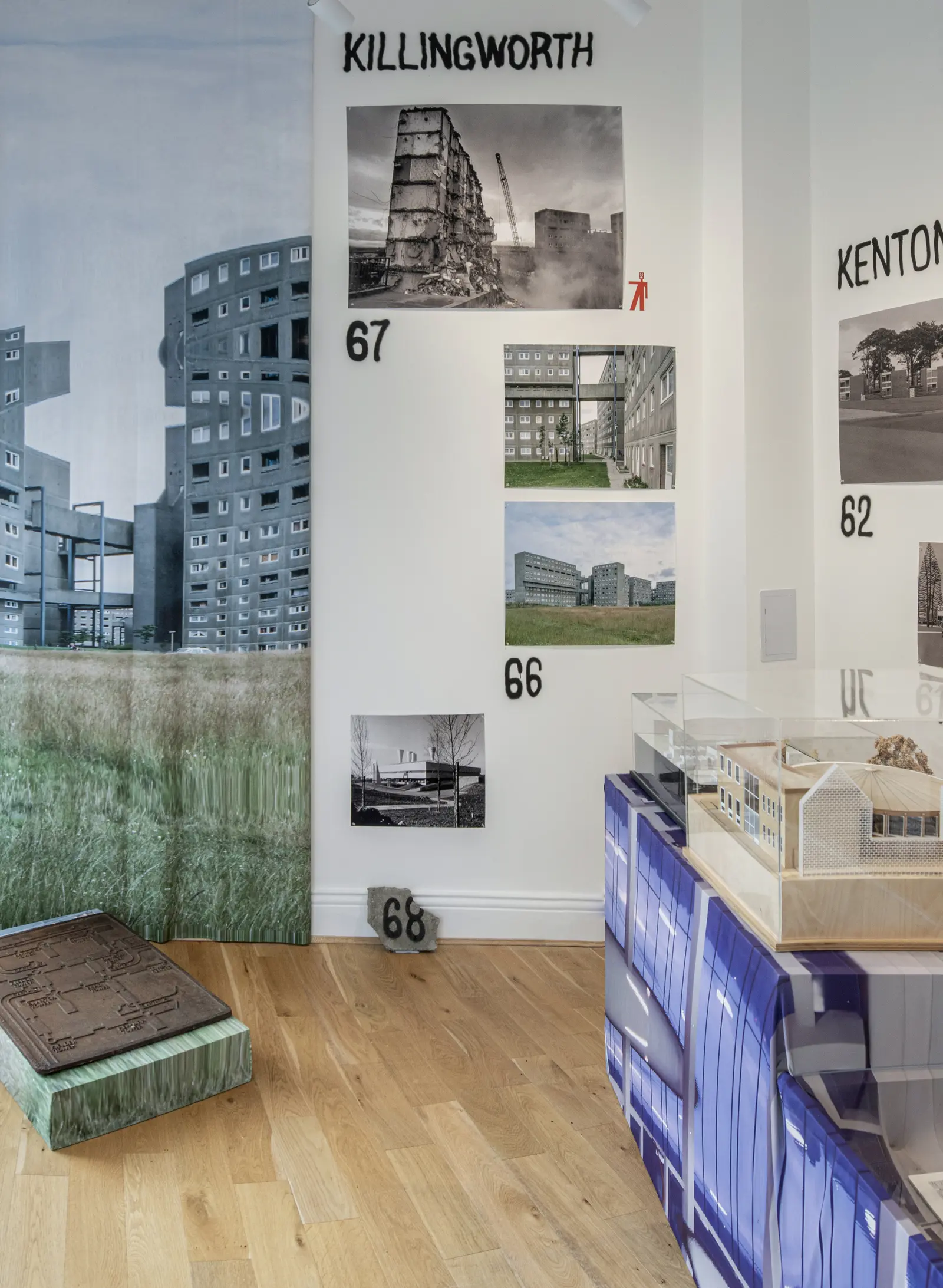 Concrete Dreams explores Tyneside’s transformation during the 1960s and 1970s, inviting visitors to craft their own narratives as they move through the exhibition. In designing the 2D and 3D elements, we reimagined the presentation of brutalist architecture for contemporary audiences, moving away from the often solemn, static approaches typically used to showcase this era of infrastructural transformation. Objects are displayed as constellations, moving away from a linear narrative, while the continuous three-room installation intentionally strips walls of traditional labels and explanations, toning down the institutional voice to create space for visitors’ own reflections and memories. Interpretation content was sprayed on locally sourced concrete rubble, echoing the theme of ruins and providing a tactile contrast to the exhibition’s title. Typographically, we took a handmade approach to emphasise the transient visual language of the built environment. Graffiti served as both a functional and symbolic medium, referencing construction site markings while evoking the rawness of vandalised architecture. Together, these decisions challenge conventional, sterile methods of presenting brutalist architecture, creating an experience that feels immediate, personal, and immersive.