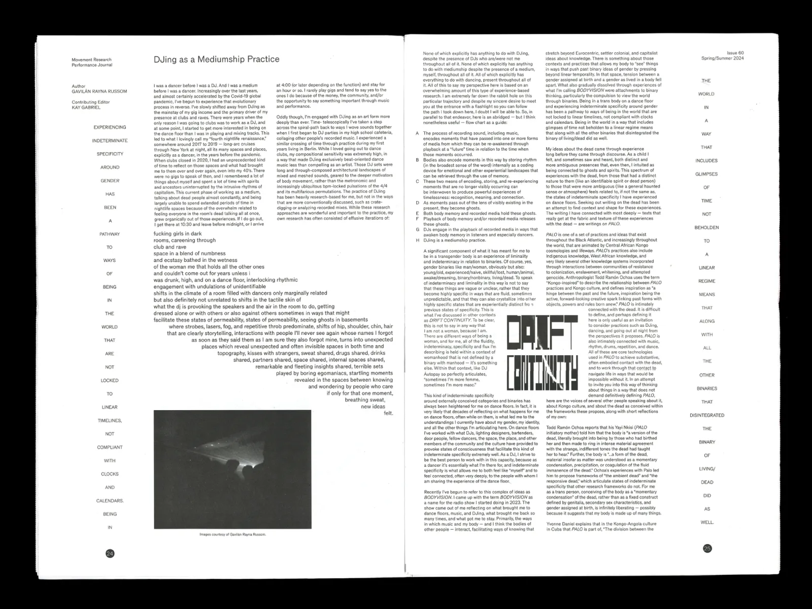 2024 Design Notes for MRPJ #60 written by Carlos Romo-Melgar and John Philip Sage, Movement Research Performance Journal - issue 60: Gender Disarray
