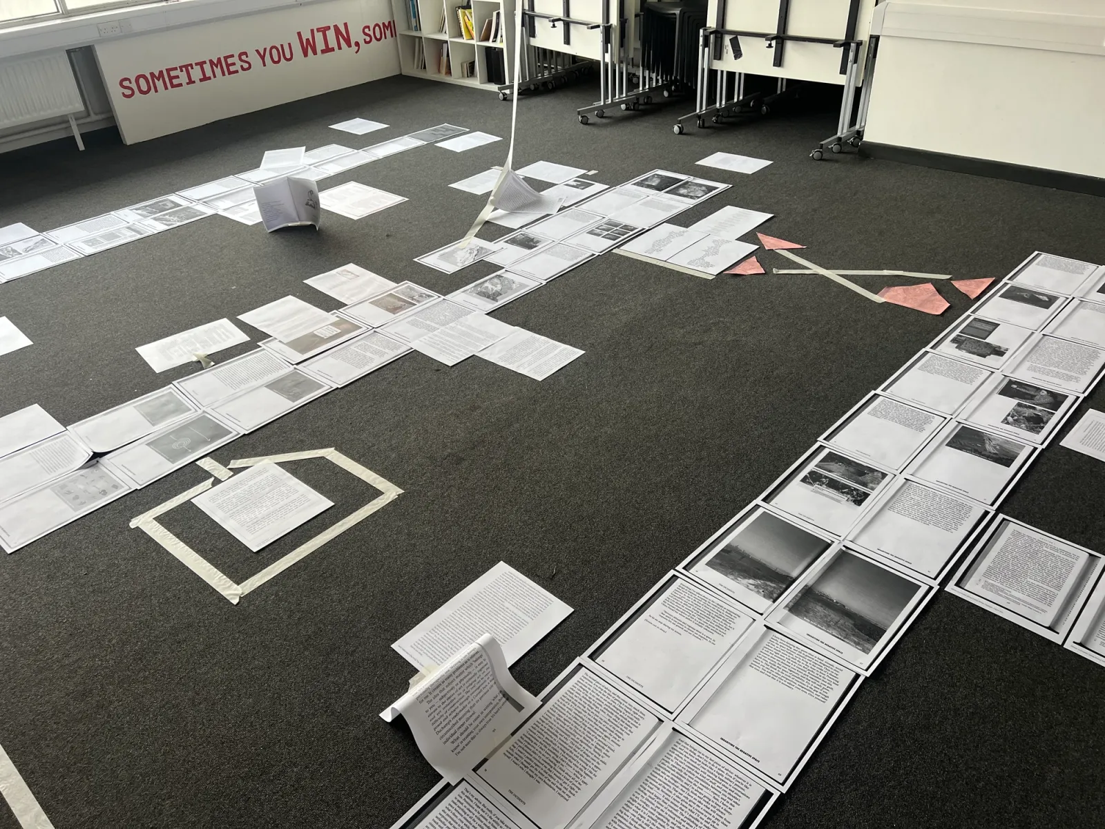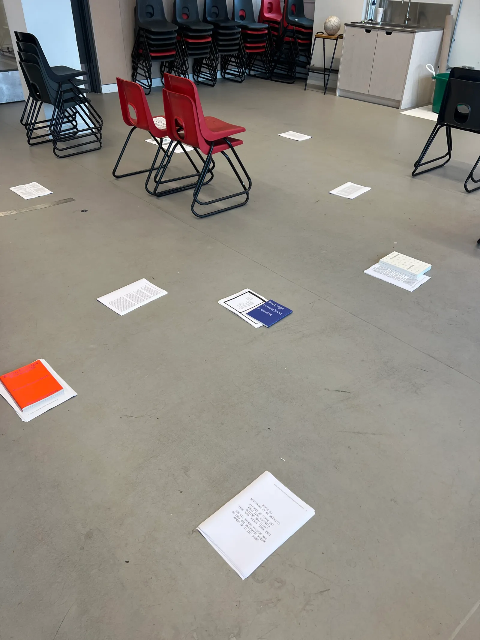 Performing Paratexts invited participants to perform the roles of title, subtitle, body text or image. Using movement and spatial arrangement, the group explored how meaning emerges through proximity, sequence and emphasis, revealing power structures embedded in publishing. Influenced by Johanna Drucker’s Diagrammatic Writing, the workshop positioned layout as performative, relational and critical rather than aiming for a final artefact.