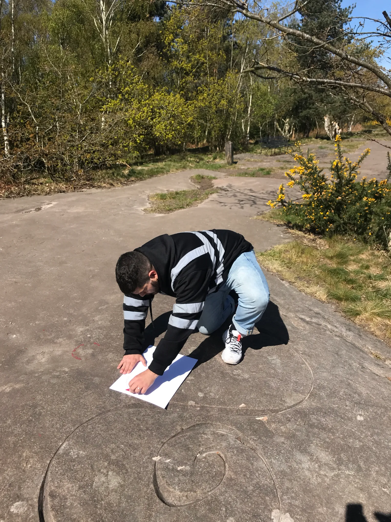 Workshop for Incidental Writing approached writing as an embodied, spatial and editorial practice. Participants used chance-based methods, such as tracing pebble outlines, to delimit fragments of source texts, producing speculative writing that introduced rupture and unpredictability. Outcomes were compiled into a collective manifesto and displayed across Bidston Hill, foregrounding writing as a distributed, material and environmental practice.