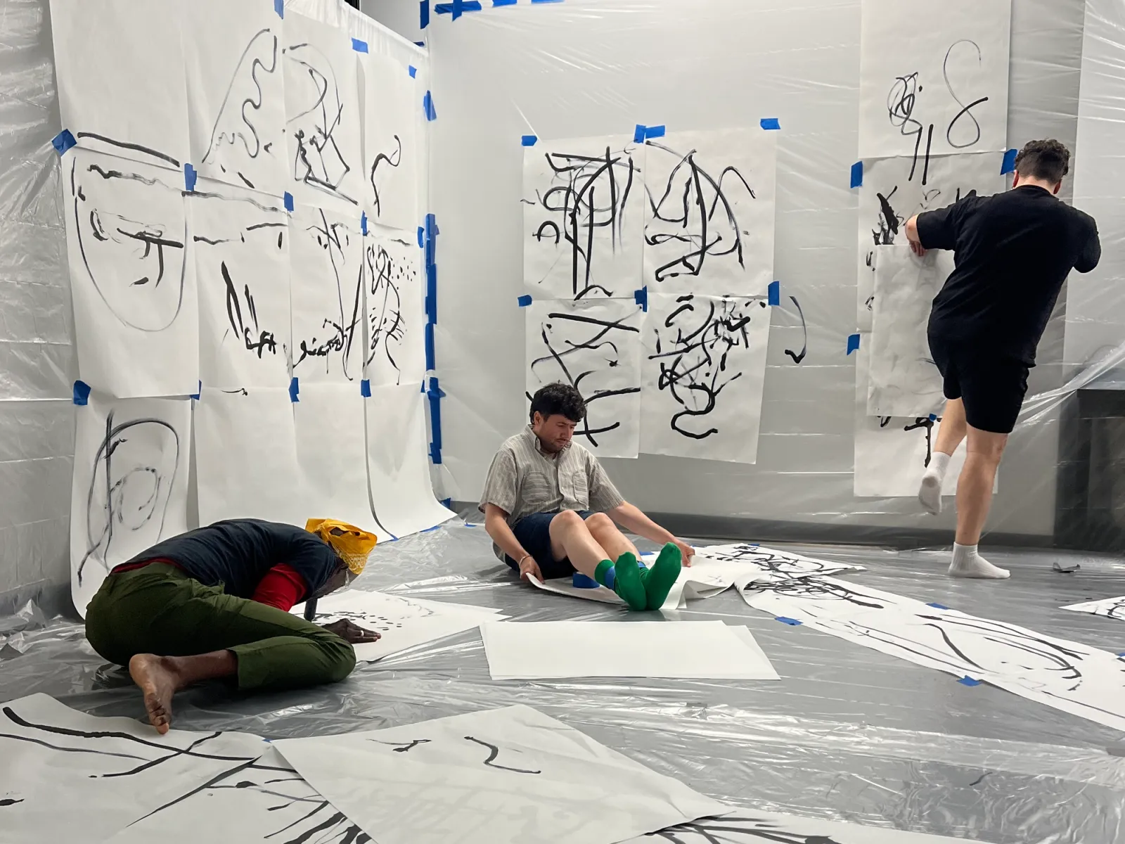 In this workshop, developed with Carlos Romo-Melgar for the Movement Research Performance Journal, we explore intersections between movement and letterforms. We invited participants, many outside graphic design, to challenge typographic traditions by engaging with tools, gestures, and bodies rather than fixed rules. Typography often foregrounds the mark on paper while omitting the body that produces it. We propose a shift: using Laban Efforts as a framework to connect bodily movement with typographic gesture. Through shared prompts, participants generate traces, strokes, and graphic components that can later be analyzed for synchronicities and translated into type design.